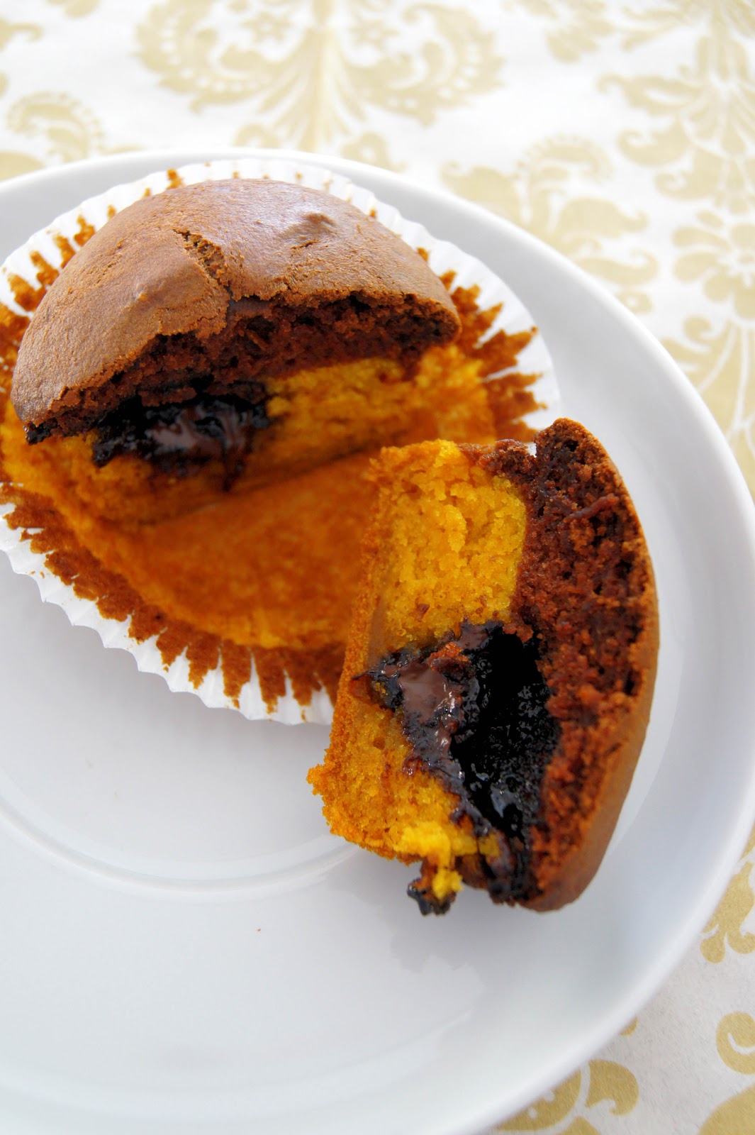 Noch so eine Idee mit Kürbis 🙂 Die in Ammiland backen schließlich fast ausschließlich mit Kürbis, dann kann ich das auch. Die Farben leuchten so schön, ich hatte schon Angst das schöne Orange ginge beim Backen verloren…