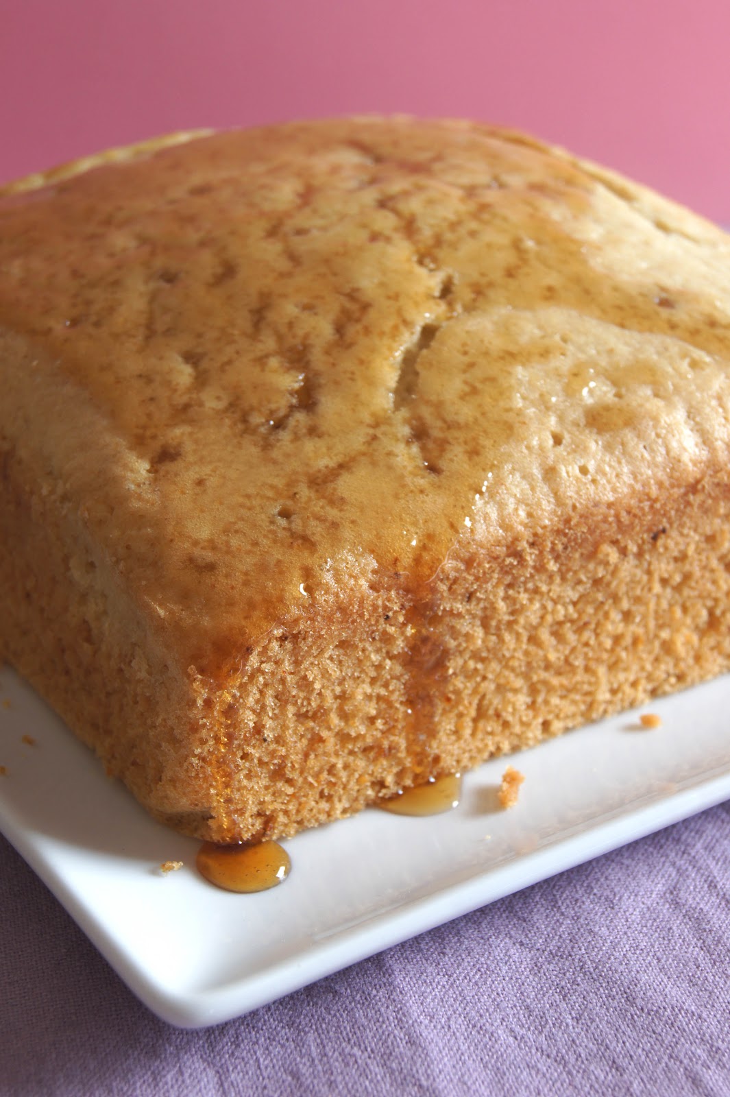 für den Guss einfach ein paar Esslöffel Ahornsirup mit etwas oragensaft verrühren und mit einem Pinsel oder Teelöffel über den Kuchen geben. Die Glasur machten den Kuchen noch saftiger und glänzend. Da sie aber flüssiger als Schokolade oder Zuckerguss ist, ist sie optisch nur durch den schönen Glanz zu sehen.
